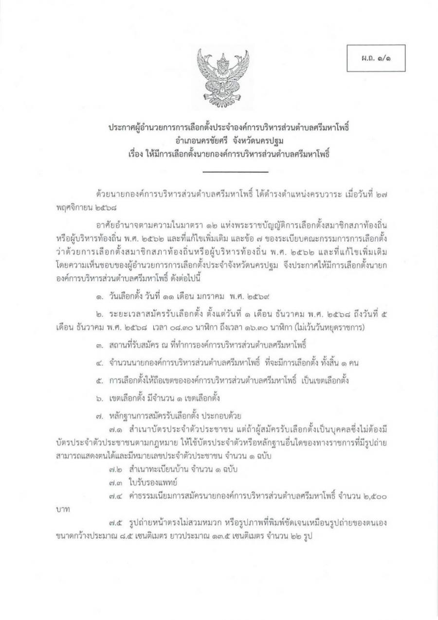 ประกาศให้มีการเลือกตั้งสมาชิกสภาองค์การบริหารส่วนตำบลศรีมหาโพธิ์ และนายกองค์การบริหารส่วนตำบลศรีมหาโพธิ์